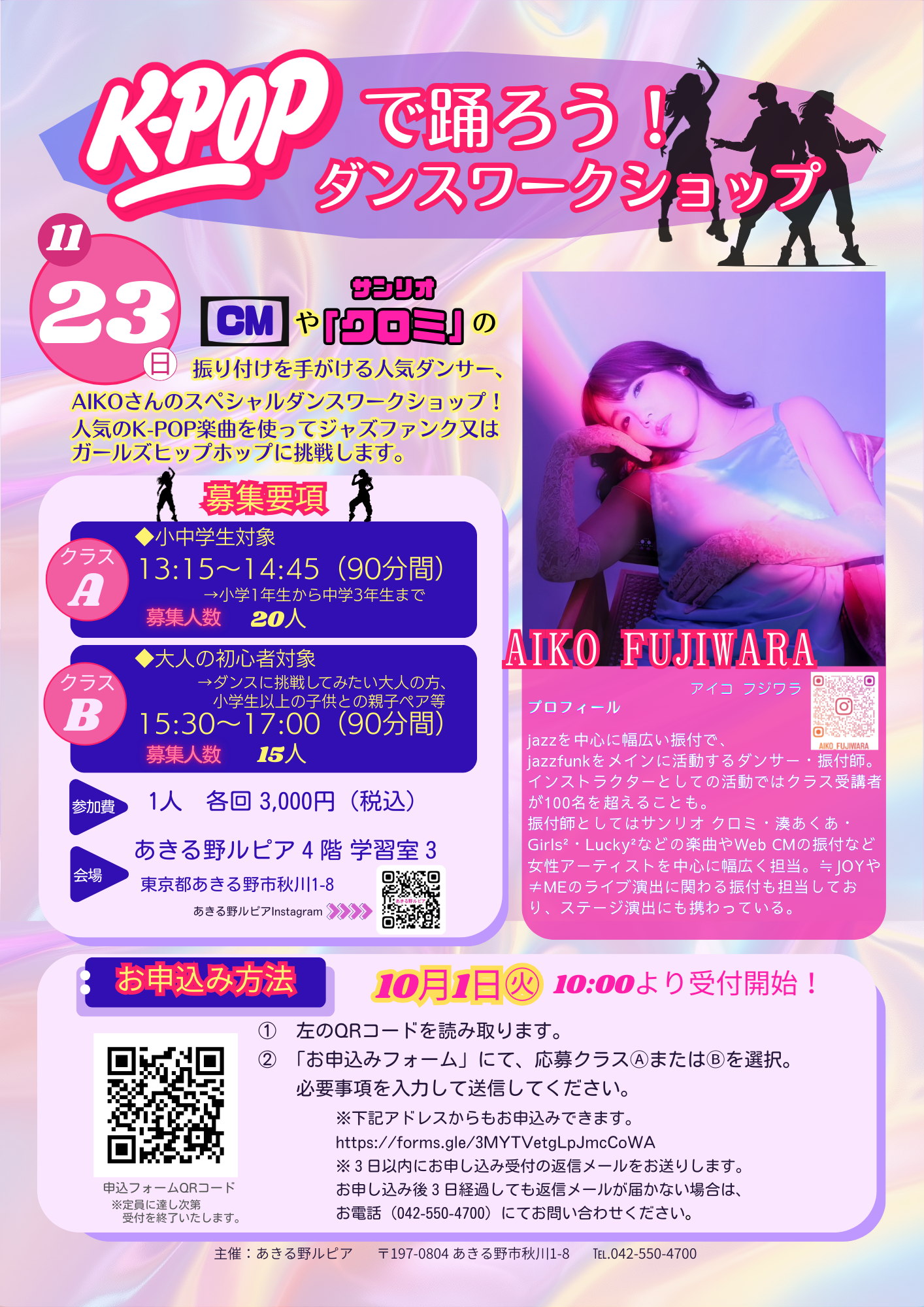あきる野ルピアにてダンサーAIKO FUJIWARAのダンスワークショップが開催!